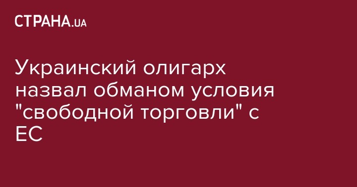 Украинский олигарх назвал обманом условия "свободной торговли" с ЕС