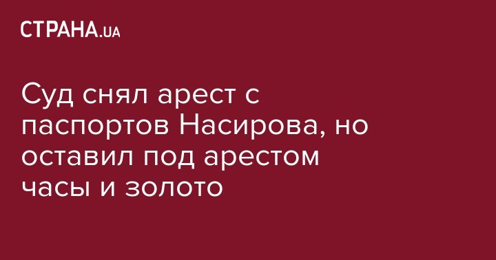 Об этом написал на своей странице в социальной сети Facebook депутат Верховной Рады от фракции "Объединение "Самопомощь" Андрей Журжий. "Апелляционный суд Киева подтвердил законность ареста у Насирова около 30 тыс. евро наличными, 10 часов и золота", - сообщил он. С документов и паспортов Насирова арест был снят.