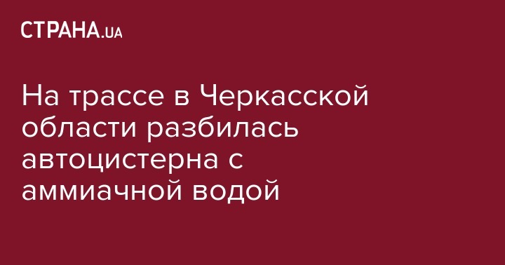 В среду, 19 апреля в Черкасской области фура, перевозившая в цистерне аммиачную воду, попала в ДТП. В результате на трассе "Золотоноша-Черкассы-Смела-Умань" произошел разлив аммиачной воды.