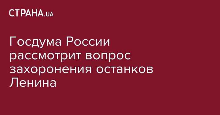 Госдума России рассмотрит вопрос захоронения останков Ленина
