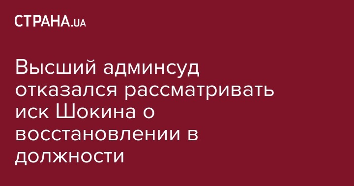 Высший админсуд отказался рассматривать иск экс-генпрокурора Виктора Шокина о восстановлении его в должности. Об этом на своей странице в Facebook сообщил нардеп Виталий Куприй.