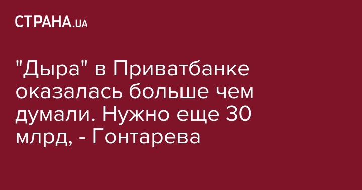 Национализированный ПриватБанк необходимо будет докапитализировать не менее чем на 30 млрд грн. Об этом заявила председатель НБУ Валерия Гонтарева, комментируя предварительные итоги аудита ПриватБанка в ходе "круглого стола" "Реформы банковского сектора в Украине" в Вашингтоне в пятницу в Киеве.