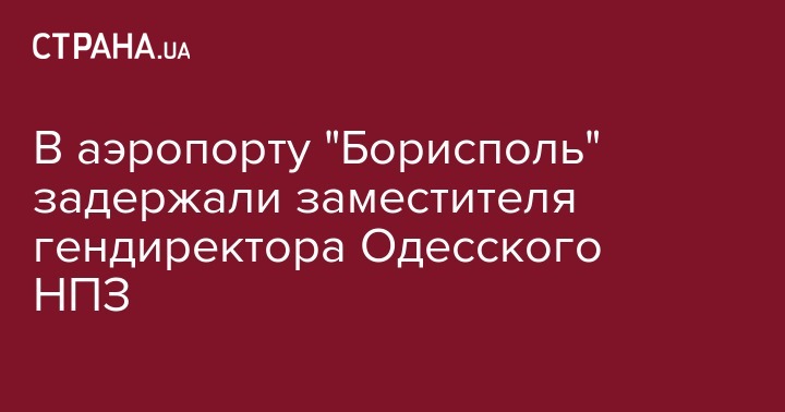 В Борисполе под Киевом задержан один из заместителей генерального директора ОАО "Одесский НПЗ", которого подозревают в организации фиктивного вывоза нефтепродуктов через нефтеперерабатывающий завод. Об этом в Facebook сообщает пресс-секретарь генпрокурора Лариса Сарган в Facebook.