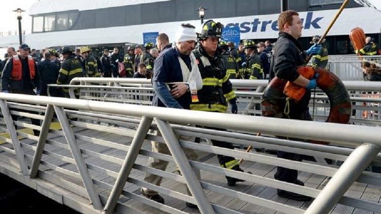 Из-за столкновения парома с пирсом также произошла утечка топлива в море, Фото Justin Lane/runyweb.com
