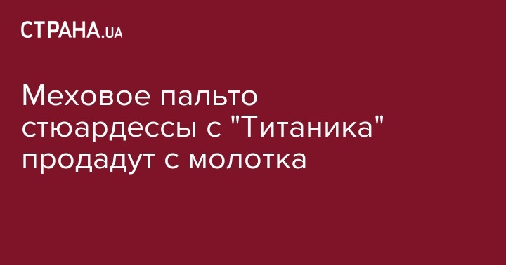 Меховое пальто стюардессы с "Титаника" продадут на аукционе в Британии. Верхняя одежда принадлежала стюардессе затонувшего корабля Мейбл Беннетт, сообщает ВВС.