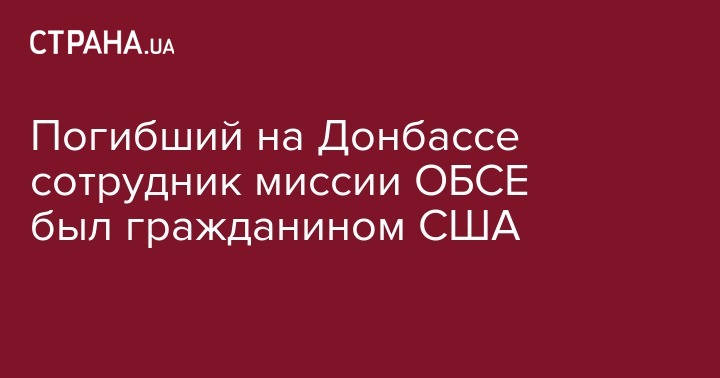 Погибший сегодня на Донбассе, в результате подрыва автомобиля, сотрудник миссии ОБСЕ был гражданином США. Об этом сообщает Интерфакс.