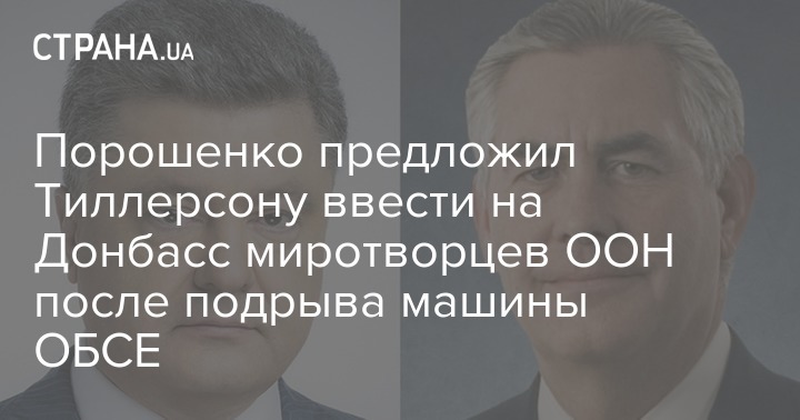 Президент Петр Порошенко предложил госсекретарю США Рексу Тиллерсону активизировать рассмотрение вопроса о размещении на Донбассе международного миротворческого контингента под эгидой Организации Объединенных Наций. Об этом сообщает пресс-служба президента по результатам телефонного разговора с Тиллерсоном.