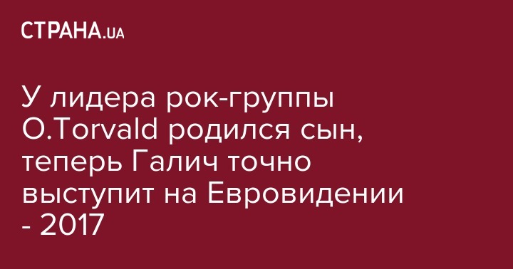 У лидера рок-группы О.Torvald родился сын, теперь Галич точно выступит на Евровидении - 2017