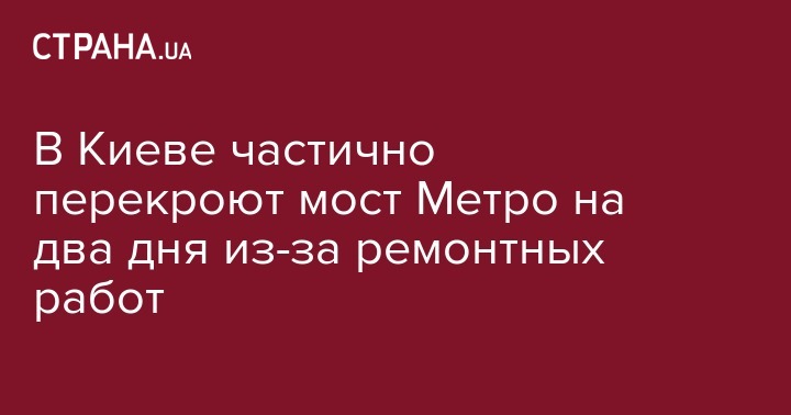 На этой неделе, со среды по пятницу (с 26 по 28 апреля) на киевском мосту Метро будут вестись ремонтные работы, из-за чего коммунальщики частично перекроют движение. Об этом в Facebook сообщает "Киевавтодор".