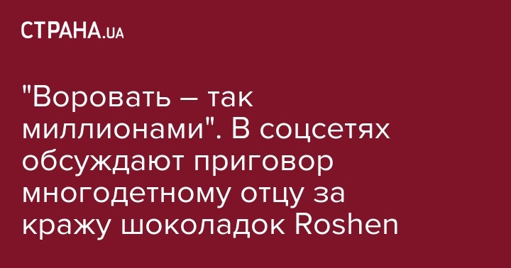 Ранее "Страна" сообщала, что за кражу шоколадок Roshen многодетного отца посадили на два года. Отец 4-х малолетних детей ранее уже привлекался к ответственности за кражу.