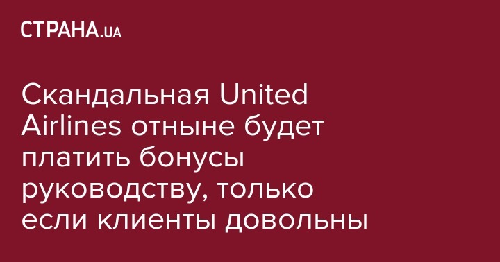 В американской авиакомпании United Airlines после скандального инцидента с силовым выволакиванием пассажира с рейса изменили систему выплат бонусов руководству - они теперь будут привязаны к удовлетворенности клиентов предоставленными услугами. Об этом сообщает ВВС.