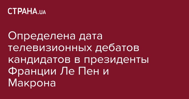 Определена дата телевизионных дебатов кандидатов в президенты Франции Ле Пен и Макрона