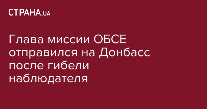 Глава миссии ОБСЕ отправился на Донбасс после гибели наблюдателя
