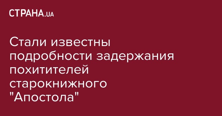 Как сообщала "Страна", сегодня в Киеве ул. Саксаганского, в ресторане, полиция задержала банду, похитившую раритетного "Апостола" 1574 г. из библиотеки Вернадского, а также обнаружили саму книгу. Книгу похитили в мае 2016 г.
