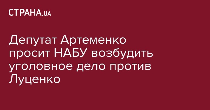 Народный депутат Андрей Артеменко обратился в Национальное антикоррупционное бюро Украины с заявлением начать досудебное расследование о совершении преступлений генеральным прокурором Юрием Луценко. Об этом сам депутат сообщил "Стране".