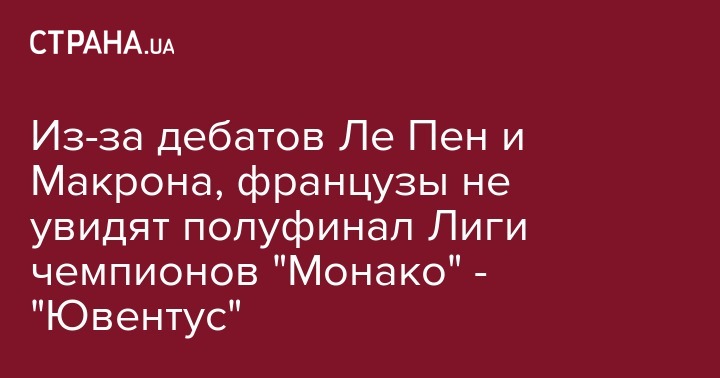 Из-за дебатов Ле Пен и Макрона, французы не увидят полуфинал Лиги чемпионов "Монако" - "Ювентус"