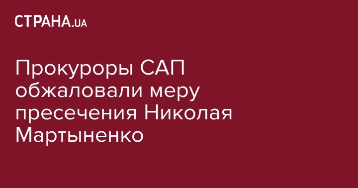 Прокуроры САП обжаловали меру пресечения Николая Мартыненко
