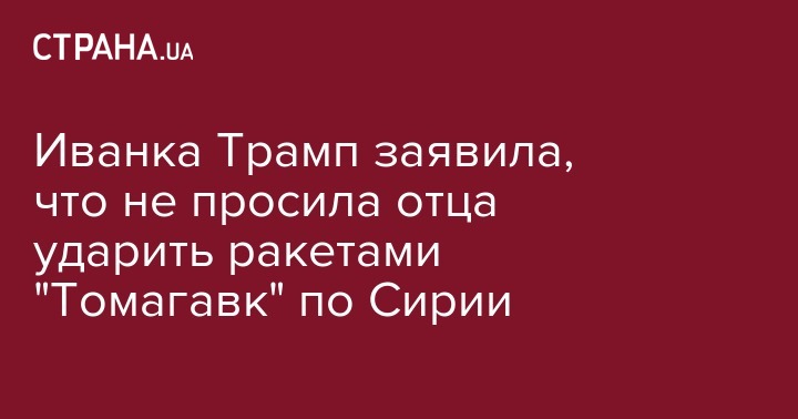 Ранее The Independent со ссылкой на источники в дипломатических кругах Великобритании сообщила, что дочь президента США Иванка Трамп в значительной мере повлияла на его решение о ракетных ударах по Сирии. Ранее Иванка написала в Twitter, что гордится отцом, приказавшим нанести ракетные удары по Сирии.