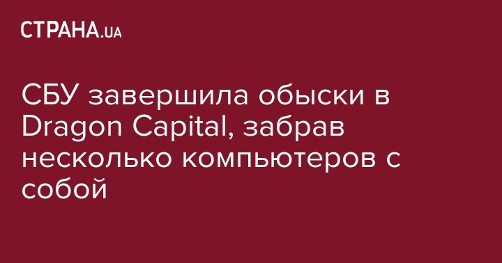 Обыск в инвестиционной компании Dragon Capital завершился, было изъято несколько компьютеров. Об этом на своей странице в Facebook сообщила руководитель пресс-службы Dragon Capital Ольга Белобловская.