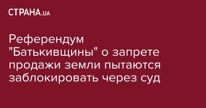 Как стало известно "Стране" от источников в судейских кругах, инициативу всеукраинского референдума по народной инициативе о запрете продажи земель сельскохозяйственного назначения, которую начала активно продвигать "Батькивщина", попытаются заблокировать через судебный запрет. Об этом свидетельствует имеющийся в распоряжении "Страны"  план судебных заседаний окружного административного суда Киева.