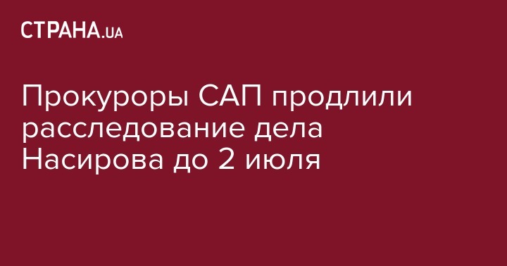 Сотрудники специализированной антикоррупционной прокуратуры (САП) продлили предельный срок расследования уголовного производства в отношении отстраненного председателя Государственной фискальной службы (ГФС) Романа Насирова до 2 июля 2017 года.