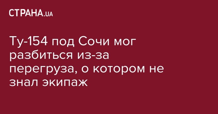 До обнародования официальных выводов российские СМИ озвучили очередную версию причины катастрофы Ту-154 под Сочи, ссылаясь на экспертов. Так, Газета.Ru сообщает, что причиной падения самолета мог быть перегруз на 12 тонн.
