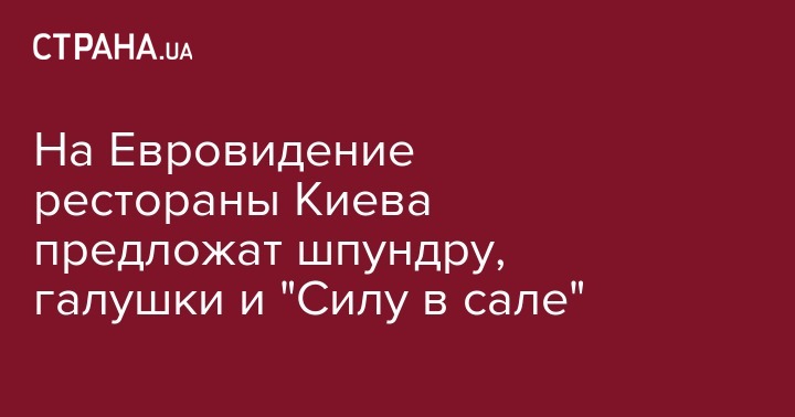 Специально к "Евровидению" в заведениях будут подаваться блюда национальной кухни: сет из телятины, крем-суп, черкасская утка, голубцы из марлина (сорт рыбы), мильфей с генеральским салом (слоеный пирог), старинная украинская шпундра (свинина в квасе) с полтавскими галушками. В меню будут и морепродукты: черноморские бычки, рапаны и устрицы, а также закарпатские травы и грибы.