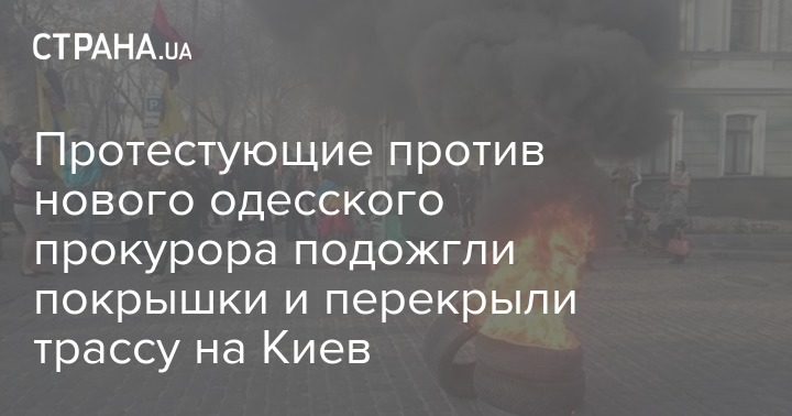 Около половины пятого вечера в Одессе под областной прокуратурой, что на Дерибасовской, активисты, которые протестуют против нового областного прокурора Николая Стоянова, подожгли покрышки.