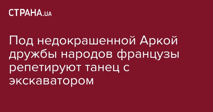 Под недокрашенной Аркой дружбы народов французы репетируют танец с экскаватором