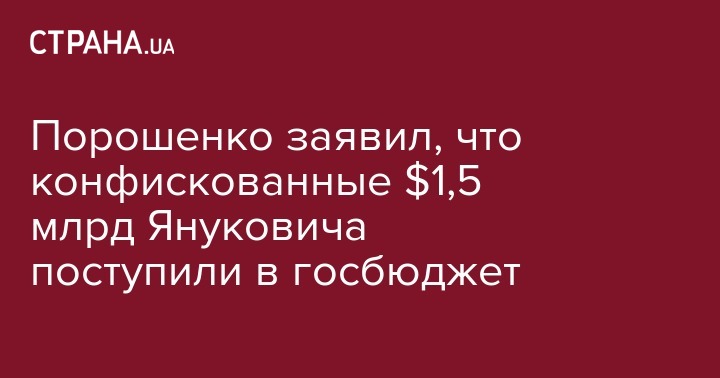 Конфискованные судом 1,4 млрд долл. на счетах в государственном "Ощадбанке" экс-президента Виктора Януковича и его окружения поступили в государственный бюджет. Об этом заявил президент Петр Порошенко в ходе встречи с генпрокурорм Юрием Луценко и секретарем СНБО Александром Турчиновым, передает пресс-служба главы государства.