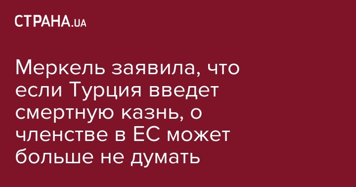 Меркель заявила, что если Турция введет смертную казнь, о членстве в ЕС может больше не думать