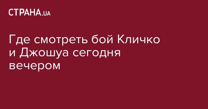 В Украине прямой эфир можно посмотреть на телеканале телеканале "Интер". Программа начнется в 20:30, ее гостем будет чемпион мира WBO в полулегком весе Василий Ломаченко. Сам поединок Кличко - Джошуа стартует ближе к полуночи.