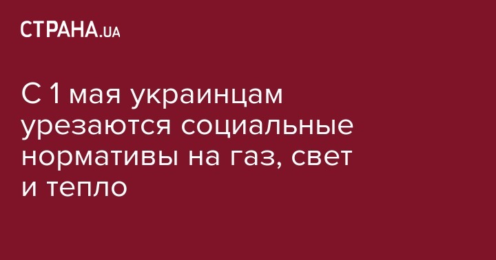 С 1 мая украинцам урезаются социальные нормативы на газ, свет и тепло