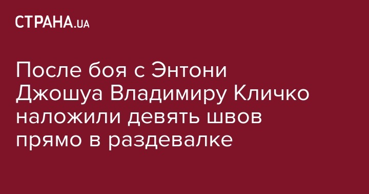 После завершения поединка с Джошуа Владимиру Кличко наложили девять швов на полученную им в пятом раунде трехсантиметровую рану-рассечение над левым глазом.