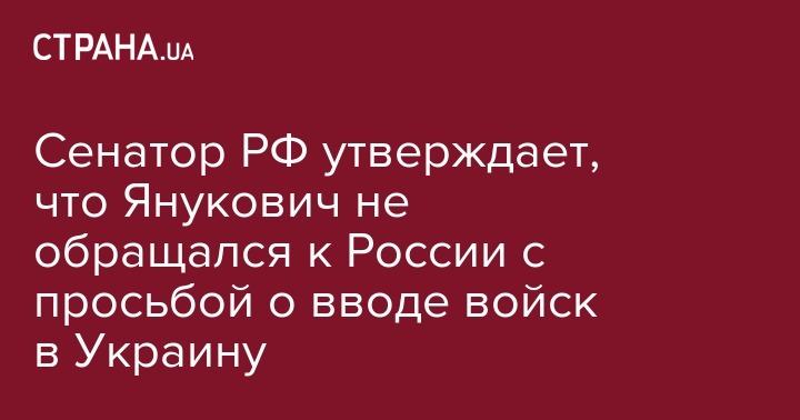 Сенатор РФ утверждает, что Янукович не обращался к России с просьбой о вводе войск в Украину