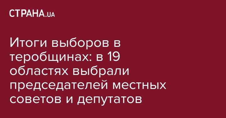 В минувшее воскресенье в 47 объединенных территориальных громадах состоялись первые выборы депутатов и председателей местных советов. В 19 областях выбрали 9 городских, 9 поселковых и 29 сельских голов.