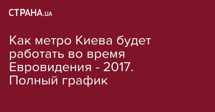 Киевское метро изменит график своей работы во время проведения полуфиналов и финала Евровидения-2017. Об этом говорится на сайте киевского метрополитена.