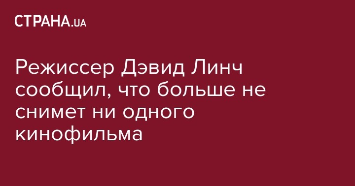 Режиссер Дэвид Линч заявил, что навсегда ушел из кино, следует из интервью постановщика изданию Sydney Morning Herald.