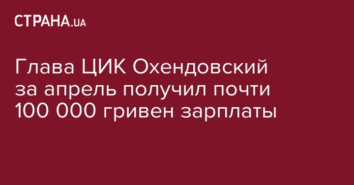 Глава ЦИК Охендовский за апрель получил почти 100 000 гривен зарплаты