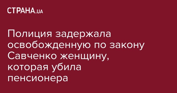Полиция задержала освобожденную по закону Савченко женщину, которая убила пенсионера