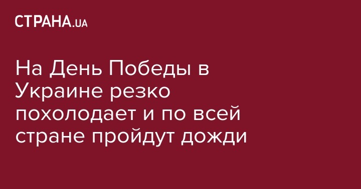 Во вторник, 9 мая, в Украине резко похолодает, ожидаются кратковременные дожди на всей территории страны. Об этом сообщает Укргидрометцентр.