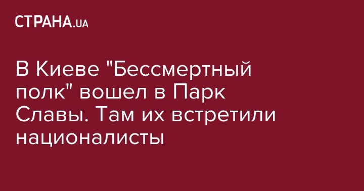 В Киеве участники акции "Бессмертного полка" прошли в Парк Славы. Всего в акции участвуют тысячи людей. В парке также находится около 20 активистов националистических организаций, который кричат "Шухевич, Бандера - герои Украины". В ответ им кричат "Фашизм не пройдет". Также участники "Бессмертного полка" требуют от националистов убрать красно-черное знамя.