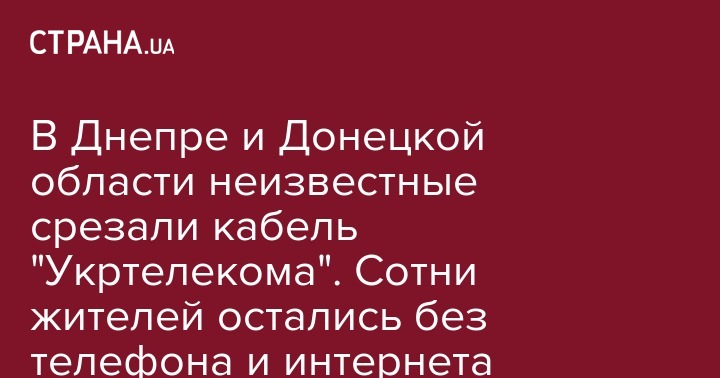 "Сегодня ночью магистральные каналы "Укртелекома", обеспечивающие связью восток Украины, подверглись массовой атаке. В 1:11 неподалеку от Новомосковска в двух местах перерезан канал "Новомосковск - Павлоград", а в 4:04 в Днипре в кабельном колодце перебиты кабели участков "Днипро - Кринички" и "Днипро - Каменское". Кабели только перерезаны. В результате наблюдается отсутствие междугородней связи для абонентов Днипра и области, а также отсутствие доступа в интернет для абонентов Донецкой области (подконтрольная территория) и, в частности, в Мариуполе и Краматорске", - написал он.