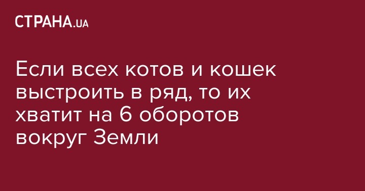 Если взять всех домашних кошек и выставить их в ряд, то получившейся цепочкой можно обмотать Землю 6 раз.