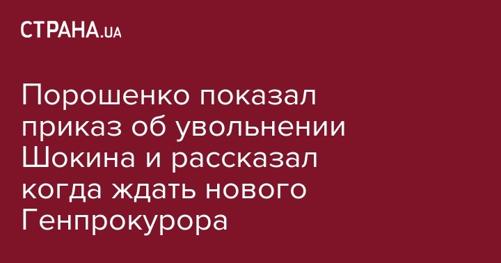 Кроме того, Порошенко показал журналистам подписанный приказ об увольнении Виктора Шокина с должности Генпрокурора.