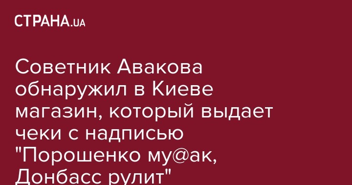 Советник главы МВД Илья Кива вместе с национал-радикалом Дмитрием Корчинским, купив товар в одном из магазинов на улице Соломенская в Киеве, с удивлением обнаружили на выданном чеке странную надпись: "Порошенко мудак, Донбасс рулит".