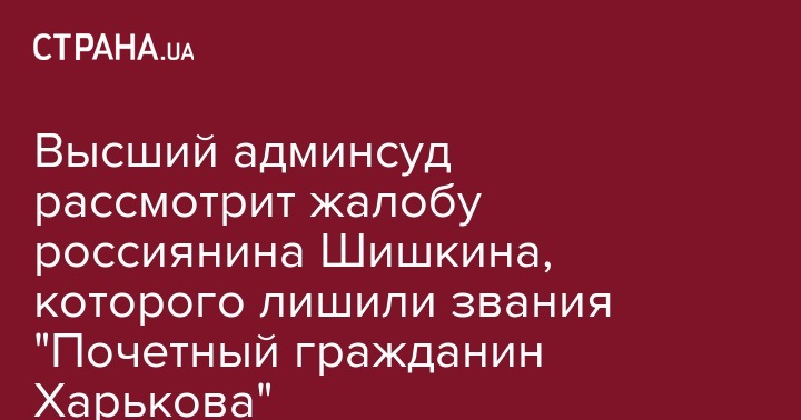 Высший административный суд Украины рассмотрит жалобу Харьковского горсовета о лишении члена Совета РФ, члена комитета Совета РФ по обороне и безопасности Александра Шишкина звания "Почетный гражданин Харькова". Об этом сообщает "Интерфакс-Украины"