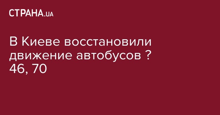 Сегодня, 15 мая, с 9.00 утра было восстановлено движение автобусов маршрутов №46,70 по закрепленным схемам движения. Об этом сообщает пресс-служба "Киевпасстранс".