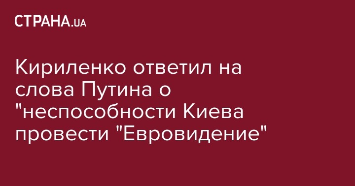 Вице-премьер-министр Вячеслав Кириленко прокомментировал заявление президента РФ Владимира Путина о неспособности Киева успешно провести конкурс масштаба "Евровидение". В своем Twitter он заметил, что Украина его вообще-то уже провела.