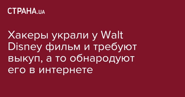 Американские СМИ сообщили, что хакеры похитили у компании The Walt Disney фильм, который скоро должен выйти на экраны, и теперь требуют выкуп, угрожая выложить его в интернет. Об этом сообщает Hollywood Reporter.